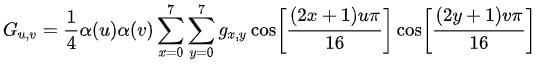 DCT 변환식은 아래와 같다.