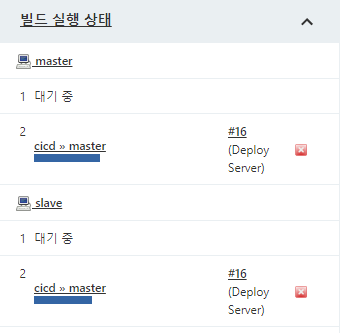 master 노드와 slave 노드에서 동시에 빌드되는 중이다.