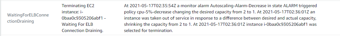 Scale-out 도중 ELB 언바인딩 또한 진행된다는 것을 알 수 있다.