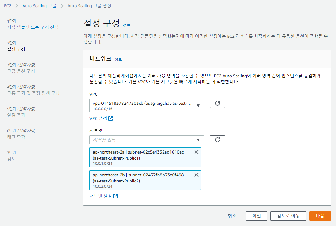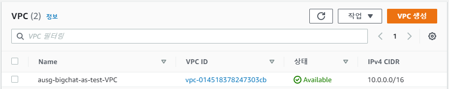 ausg-bigchat-as-test-VPCVPC - Subnet : 위에서 만든
