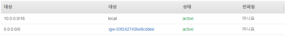 Route Table 생성 후 Public Subnet 2개와 연결해주고
