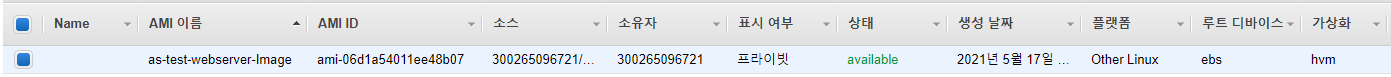- Amazon Machine Image(AMI) : web서버 인스턴스로부터 만든 이미지