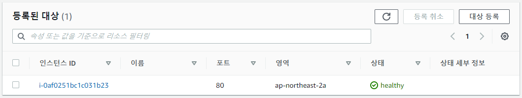 TargetGroup을 생성하고 대상으로 생성해놓은 ec2 web서버를 지정한다.