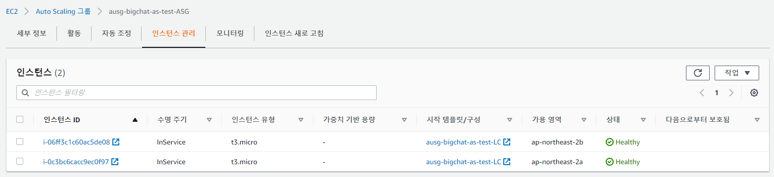 또한 Auto Scaling Group 내에서 AZ 또한 유연하게 분산배치된 것을 확인할 수 있다.