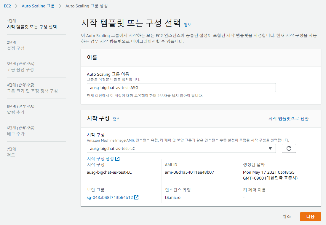 5. Auto Scaling Group 생성
