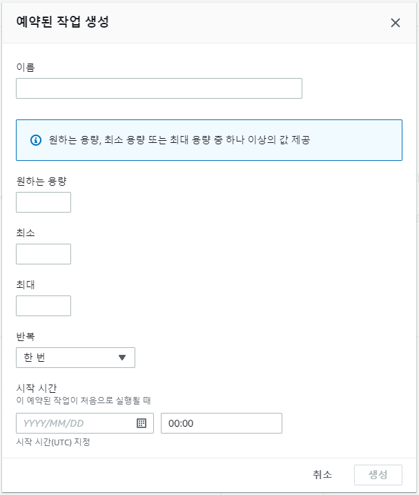 또한 예약 작업을 생성하여 원하는 시간대에 Auto Scaling Group 사이즈를 유연하게 조정할 수 있으며, 인스턴스 개수 또한 조정 가능하다.